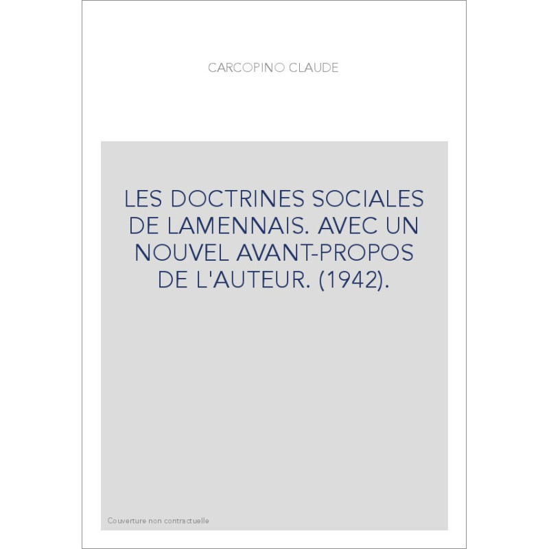 LES DOCTRINES SOCIALES DE LAMENNAIS. AVEC UN NOUVEL AVANT-PROPOS DE L'AUTEUR. (1942).
