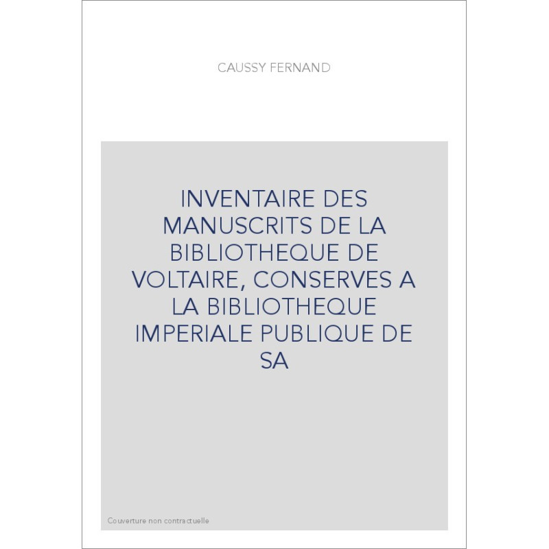 INVENTAIRE DES MANUSCRITS DE LA BIBLIOTHEQUE DE VOLTAIRE, CONSERVES A LA BIBLIOTHEQUE IMPERIALE PUBLIQUE DE SA