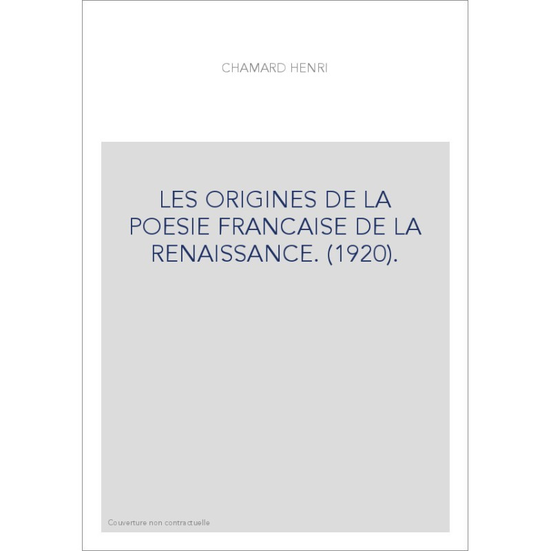 LES ORIGINES DE LA POESIE FRANCAISE DE LA RENAISSANCE. (1920).