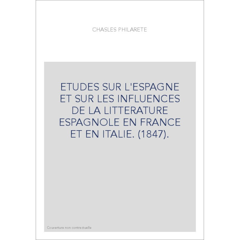 ETUDES SUR L'ESPAGNE ET SUR LES INFLUENCES DE LA LITTERATURE ESPAGNOLE EN FRANCE ET EN ITALIE. (1847).