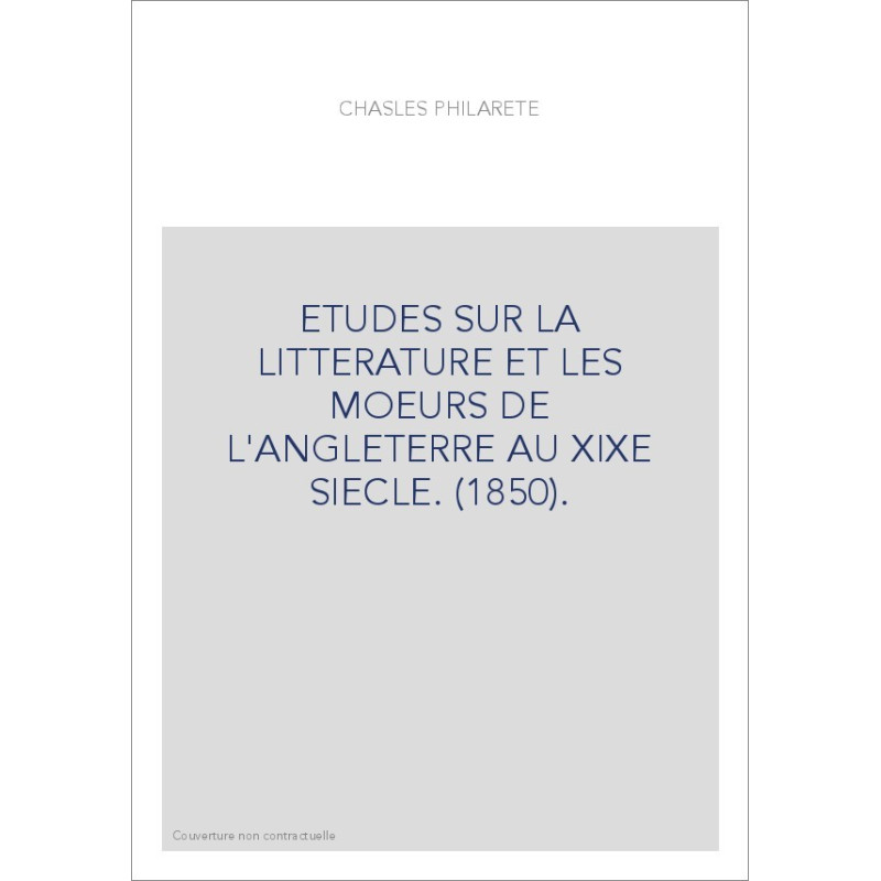 ETUDES SUR LA LITTERATURE ET LES MOEURS DE L'ANGLETERRE AU XIXE SIECLE. (1850).