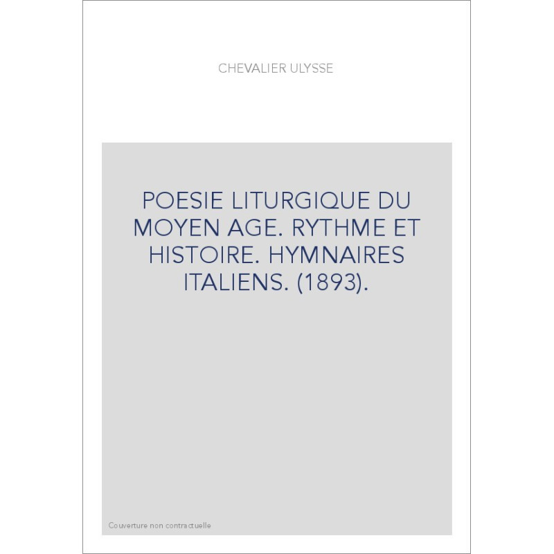 POESIE LITURGIQUE DU MOYEN AGE. RYTHME ET HISTOIRE. HYMNAIRES ITALIENS. (1893).