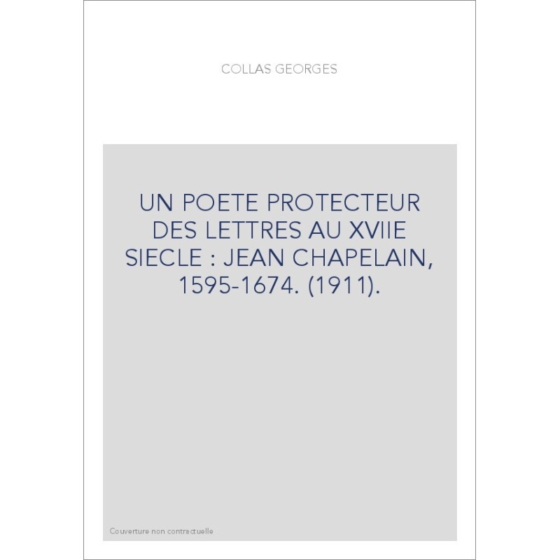 UN POETE PROTECTEUR DES LETTRES AU XVIIE SIECLE : JEAN CHAPELAIN, 1595-1674. (1911).