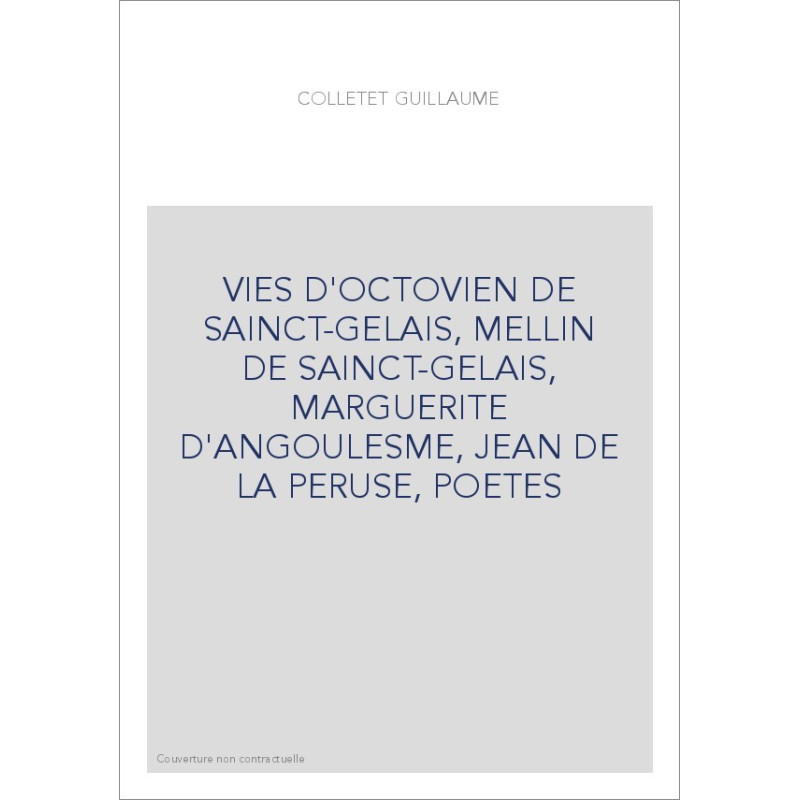 VIES D'OCTOVIEN DE SAINCT-GELAIS, MELLIN DE SAINCT-GELAIS, MARGUERITE D'ANGOULESME, JEAN DE LA PERUSE, POETE