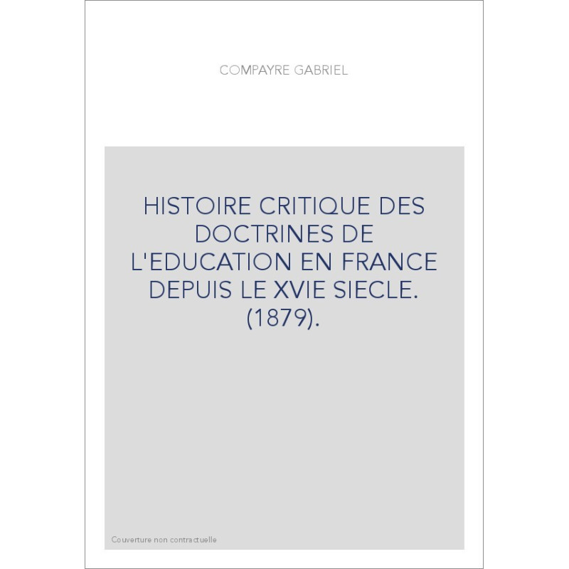 HISTOIRE CRITIQUE DES DOCTRINES DE L'EDUCATION EN FRANCE DEPUIS LE XVIE SIECLE. (1879).