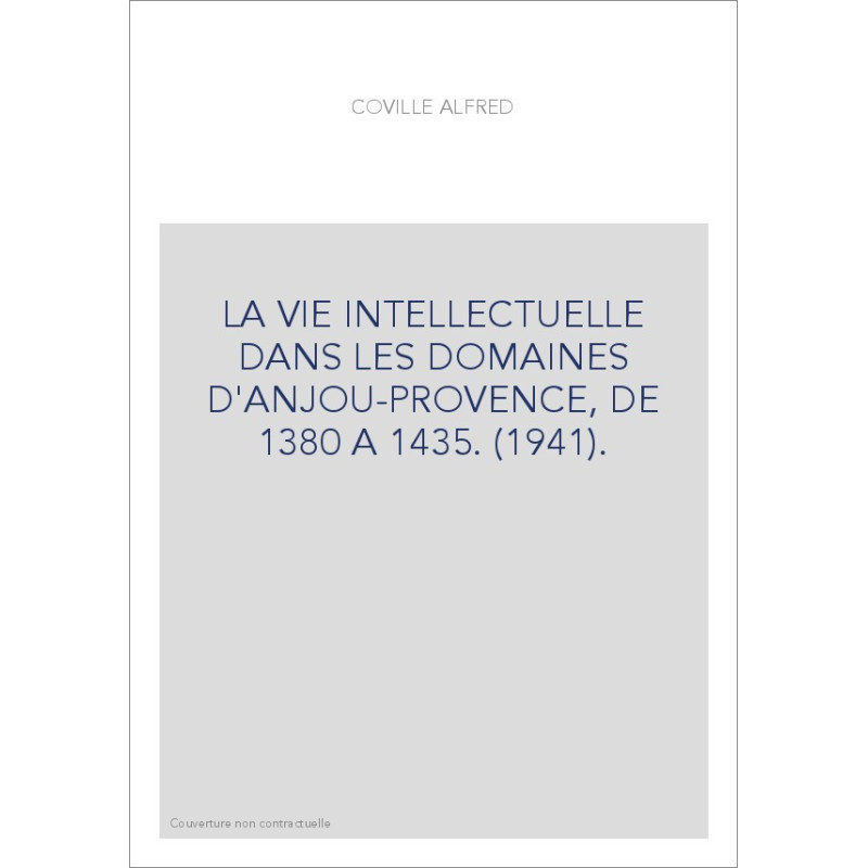 LA VIE INTELLECTUELLE DANS LES DOMAINES D'ANJOU-PROVENCE, DE 1380 A 1435. (1941).