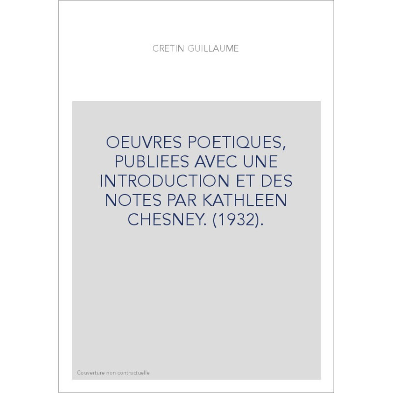 OEUVRES POETIQUES, PUBLIEES AVEC UNE INTRODUCTION ET DES NOTES PAR KATHLEEN CHESNEY. (1932).
