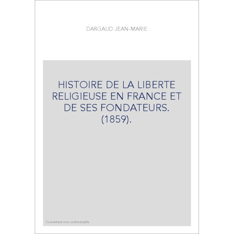 HISTOIRE DE LA LIBERTE RELIGIEUSE EN FRANCE ET DE SES FONDATEURS. (1859).
