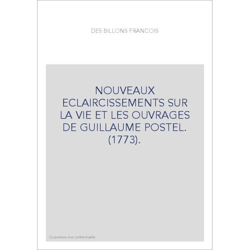 NOUVEAUX ECLAIRCISSEMENTS SUR LA VIE ET LES OUVRAGES DE GUILLAUME POSTEL. (1773).