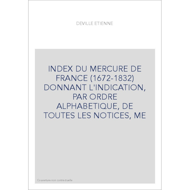 INDEX DU MERCURE DE FRANCE (1672-1832) DONNANT L'INDICATION, PAR ORDRE ALPHABETIQUE, DE TOUTES LES NOTICES, M View larger