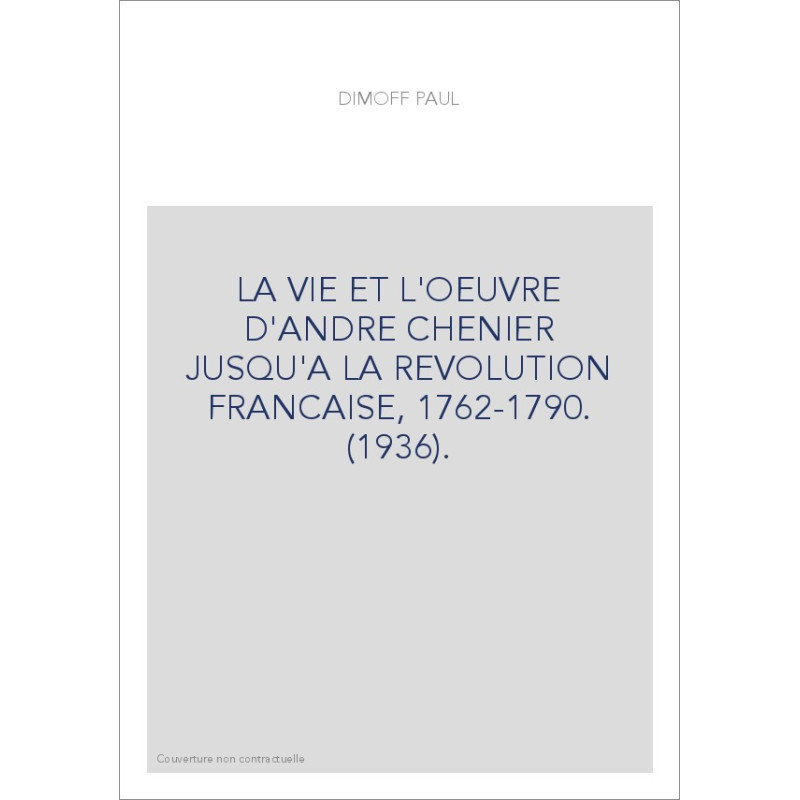 LA VIE ET L'OEUVRE D'ANDRE CHENIER JUSQU'A LA REVOLUTION FRANCAISE, 1762-1790. (1936).