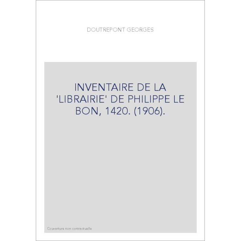 INVENTAIRE DE LA 'LIBRAIRIE' DE PHILIPPE LE BON, 1420. (1906).
