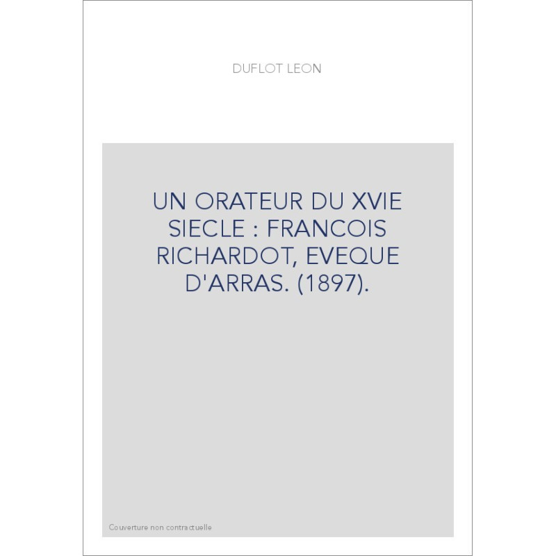 UN ORATEUR DU XVIE SIECLE : FRANCOIS RICHARDOT, EVEQUE D'ARRAS. (1897).