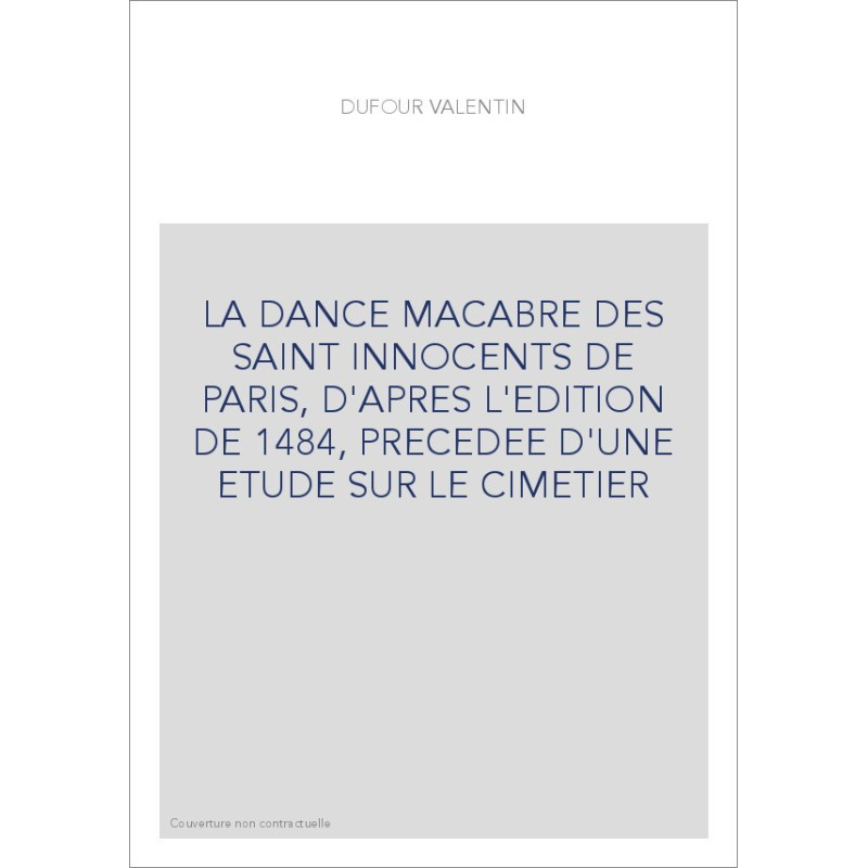 LA DANCE MACABRE DES SAINT INNOCENTS DE PARIS, D'APRES L'EDITION DE 1484, PRECEDEE D'UNE ETUDE SUR LE CIMET