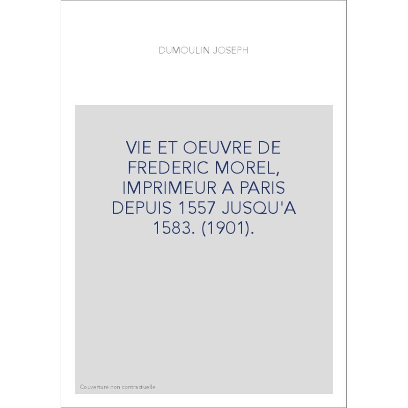 VIE ET OEUVRE DE FREDERIC MOREL, IMPRIMEUR A PARIS DEPUIS 1557 JUSQU'A 1583. (1901).