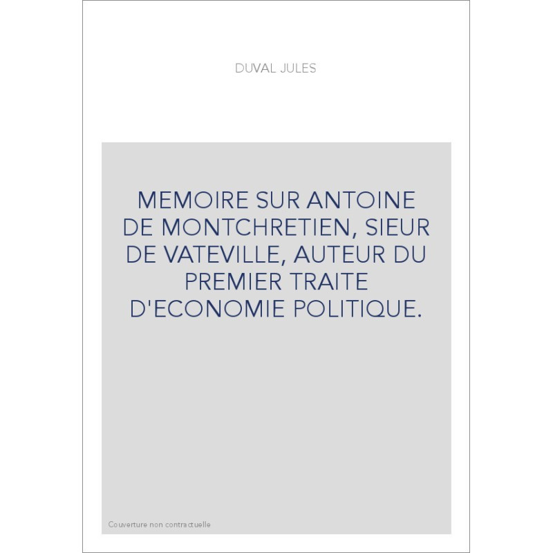 MEMOIRE SUR ANTOINE DE MONTCHRETIEN, SIEUR DE VATEVILLE, AUTEUR DU PREMIER TRAITE D'ECONOMIE POLITIQUE.