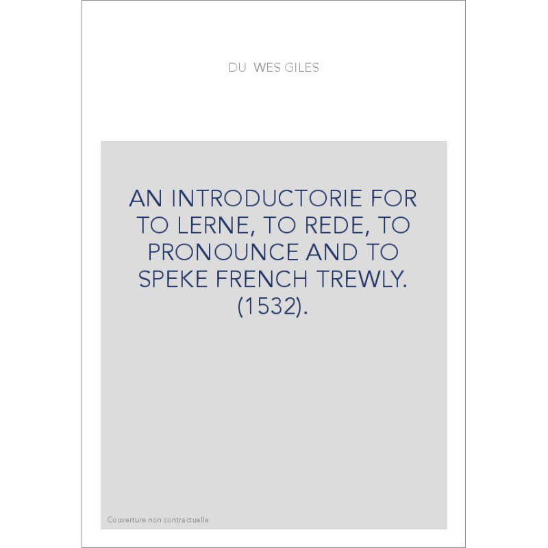 AN INTRODUCTORIE FOR TO LERNE, TO REDE, TO PRONOUNCE AND TO SPEKE FRENCH TREWLY. (1532).