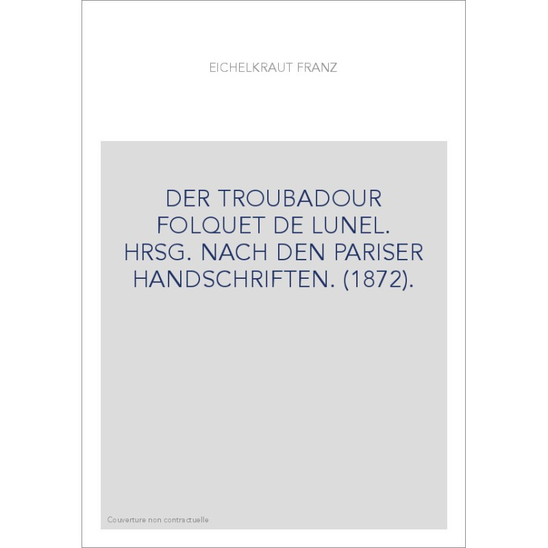 DER TROUBADOUR FOLQUET DE LUNEL. HRSG. NACH DEN PARISER HANDSCHRIFTEN. (1872).