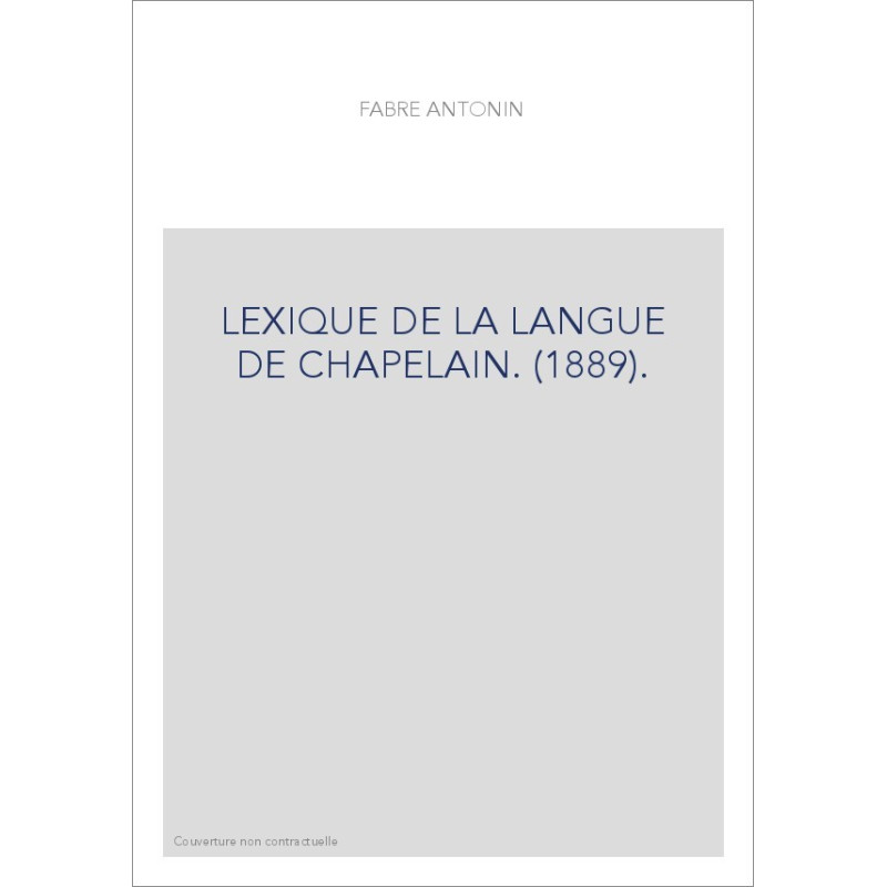 LEXIQUE DE LA LANGUE DE CHAPELAIN. (1889).