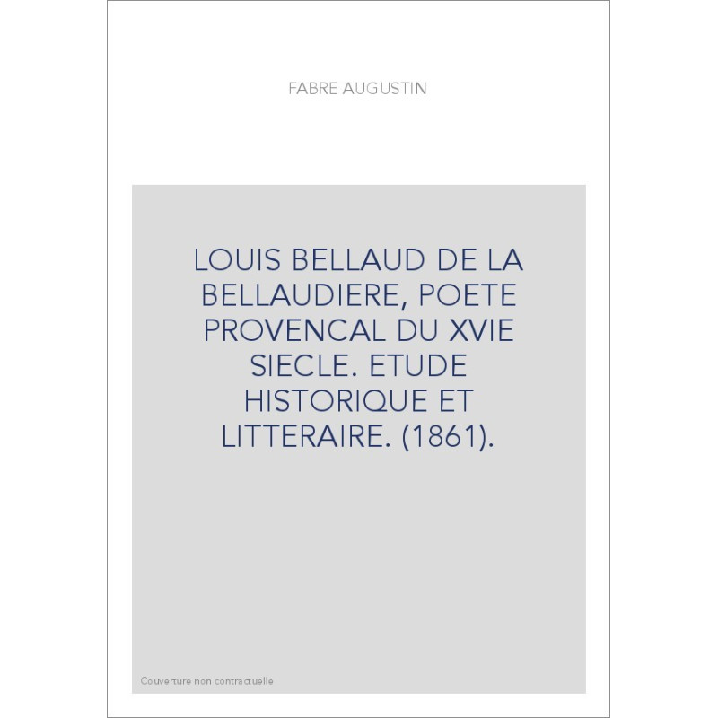 LOUIS BELLAUD DE LA BELLAUDIERE, POETE PROVENCAL DU XVIE SIECLE. ETUDE HISTORIQUE ET LITTERAIRE. (1861).