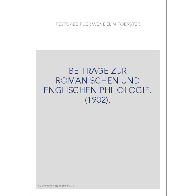FESTGABE FUR WENDELIN FOERSTER. BEITRAGE ZUR ROMANISCHEN UND ENGLISCHEN PHILOLOGIE. (1902).