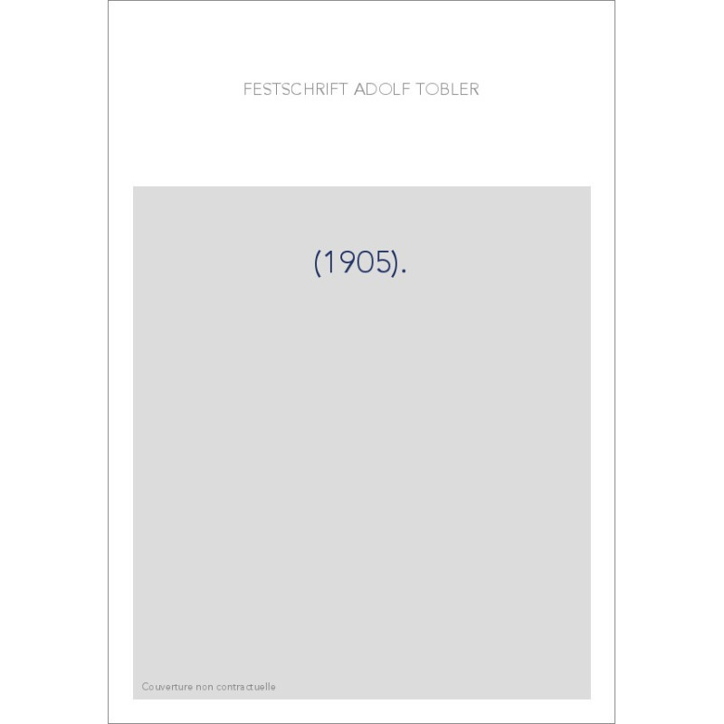 FESTSCHRIFT FUR ADOLF TOBLER. (1905).