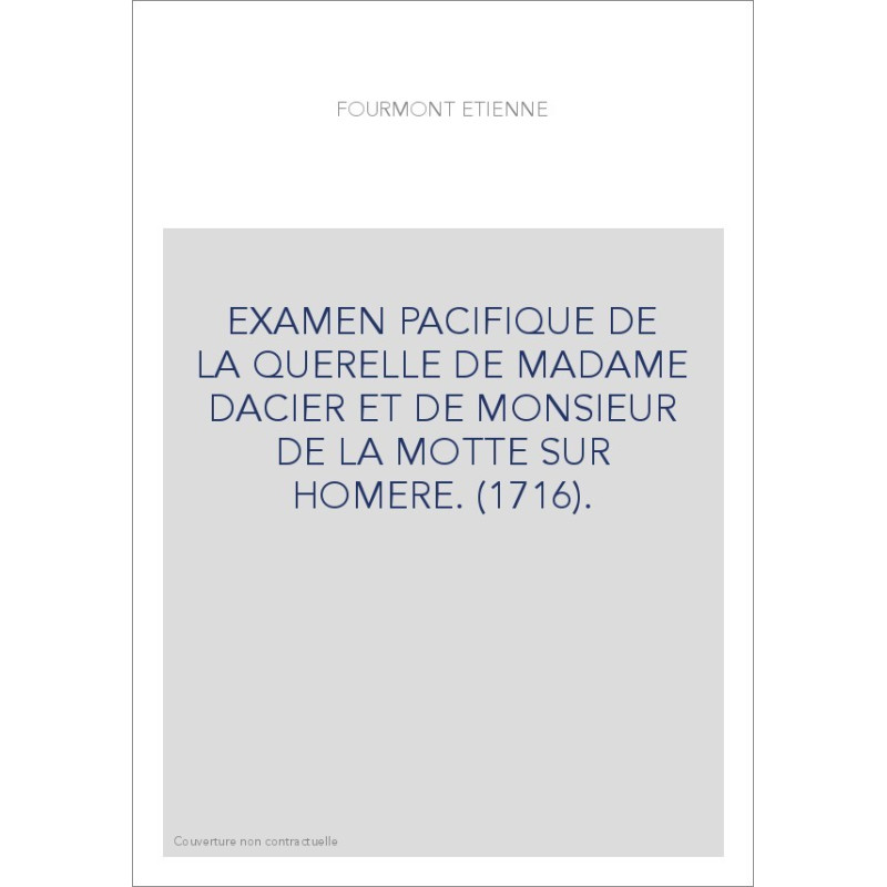 EXAMEN PACIFIQUE DE LA QUERELLE DE MADAME DACIER ET DE MONSIEUR DE LA MOTTE SUR HOMERE. (1716).