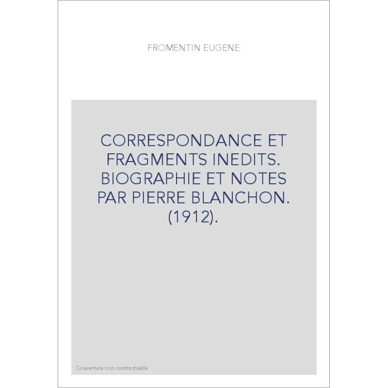 CORRESPONDANCE ET FRAGMENTS INEDITS. BIOGRAPHIE ET NOTES PAR PIERRE BLANCHON. (1912).
