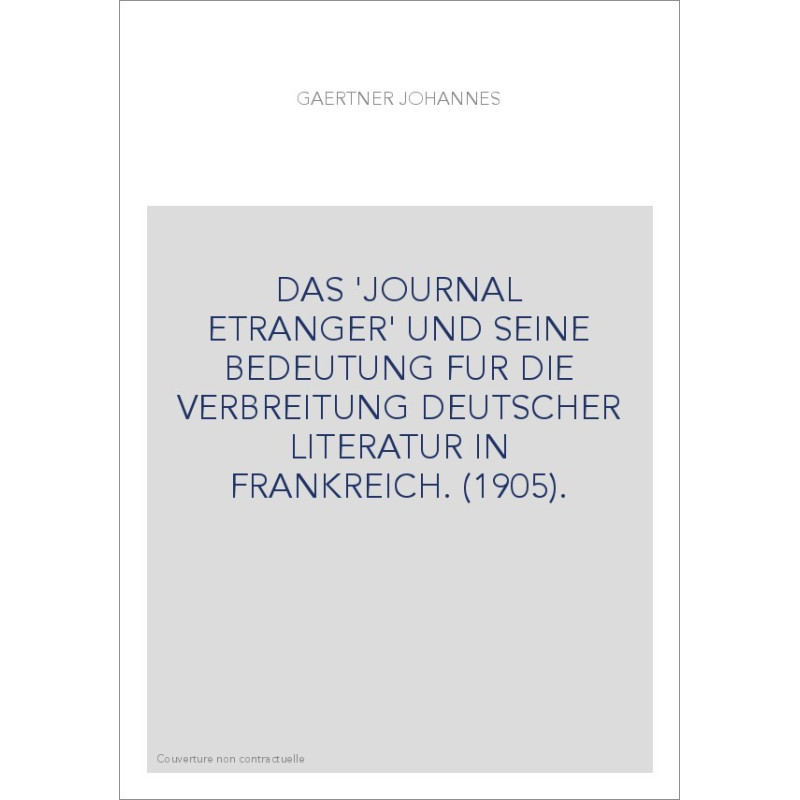 DAS 'JOURNAL ETRANGER' UND SEINE BEDEUTUNG FUR DIE VERBREITUNG DEUTSCHER LITERATUR IN FRANKREICH. (1905).