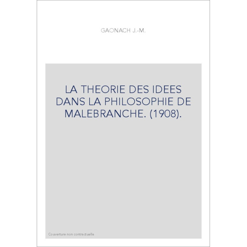 LA THEORIE DES IDEES DANS LA PHILOSOPHIE DE MALEBRANCHE. (1908).