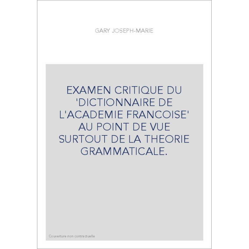 EXAMEN CRITIQUE DU 'DICTIONNAIRE DE L'ACADEMIE FRANCOISE' AU POINT DE VUE SURTOUT DE LA THEORIE GRAMMATICAL