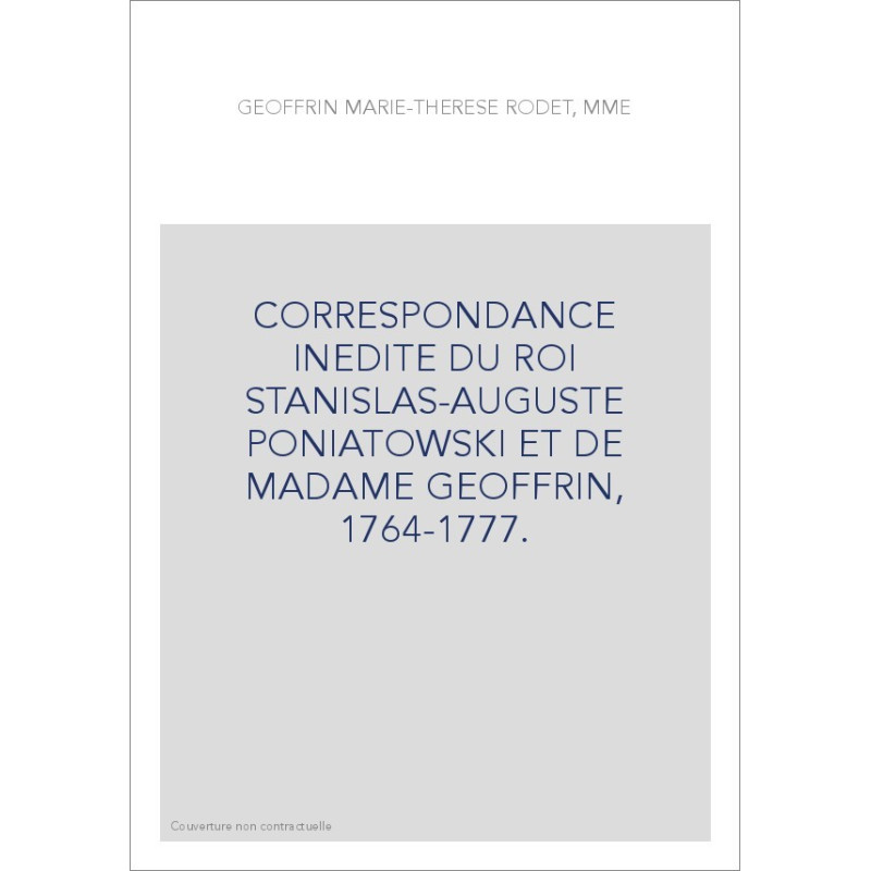 CORRESPONDANCE INEDITE DU ROI STANISLAS-AUGUSTE PONIATOWSKI ET DE MADAME GEOFFRIN, 1764-1777.