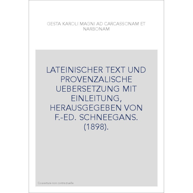LATEINISCHER TEXT UND PROVENZALISCHE UEBERSETZUNG MIT EINLEITUNG, HERAUSGEGEBEN VON F.-ED. SCHNEEGANS. (1898)