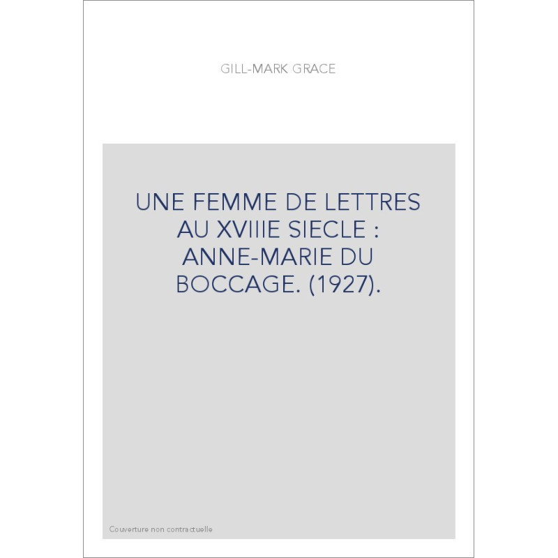 UNE FEMME DE LETTRES AU XVIIIE SIECLE : ANNE-MARIE DU BOCCAGE. (1927).