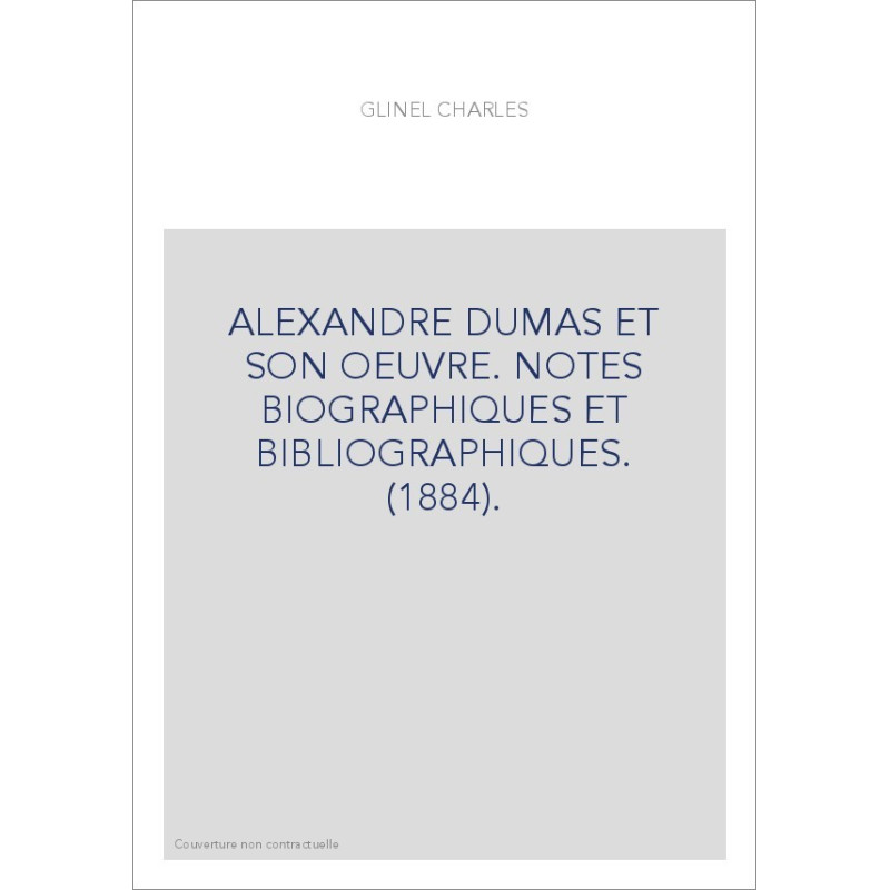 ALEXANDRE DUMAS ET SON OEUVRE. NOTES BIOGRAPHIQUES ET BIBLIOGRAPHIQUES. (1884).