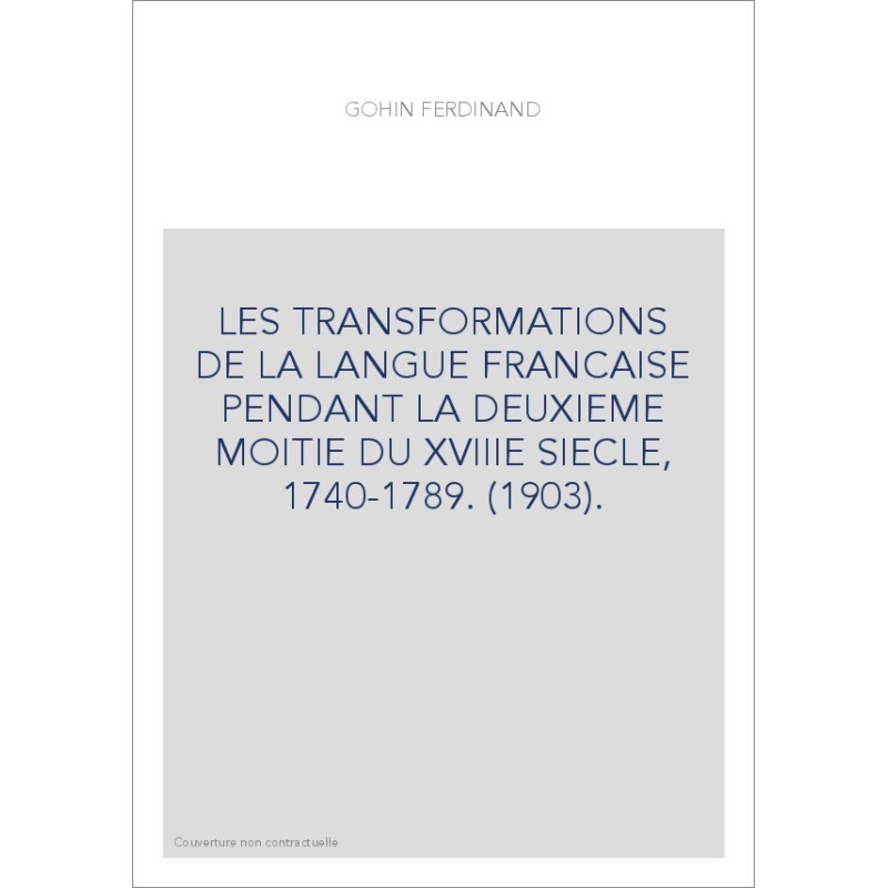 LES TRANSFORMATIONS DE LA LANGUE FRANCAISE PENDANT LA DEUXIEME MOITIE DU XVIIIE SIECLE, 1740-1789. (1903).