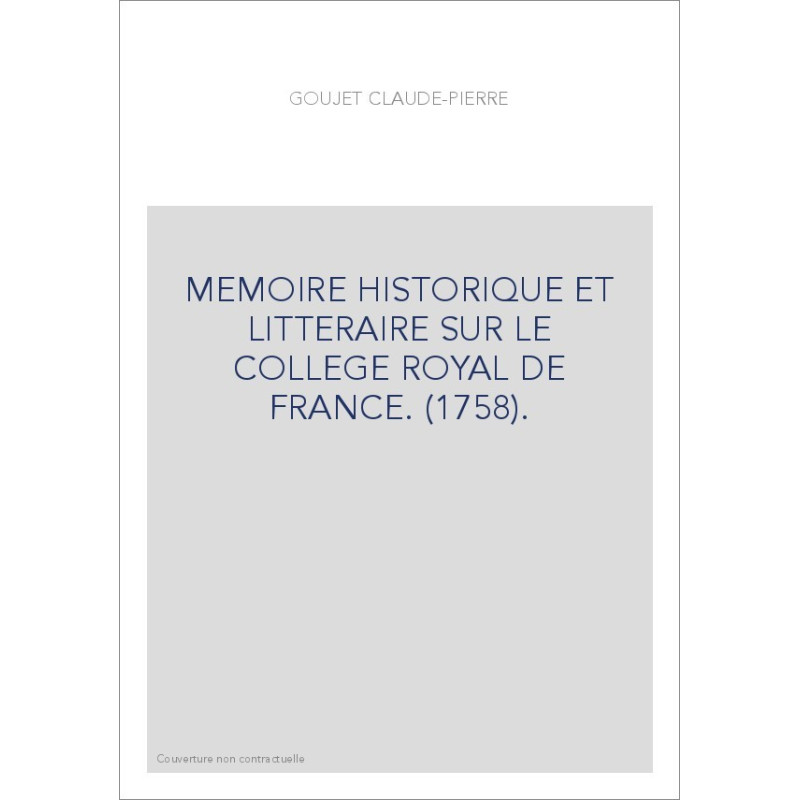 MEMOIRE HISTORIQUE ET LITTERAIRE SUR LE COLLEGE ROYAL DE FRANCE. (1758).