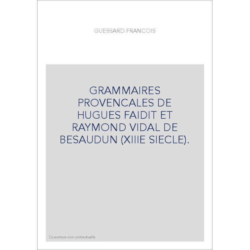 GRAMMAIRES PROVENCALES DE HUGUES FAIDIT ET RAYMOND VIDAL DE BESAUDUN (XIIIE SIECLE).