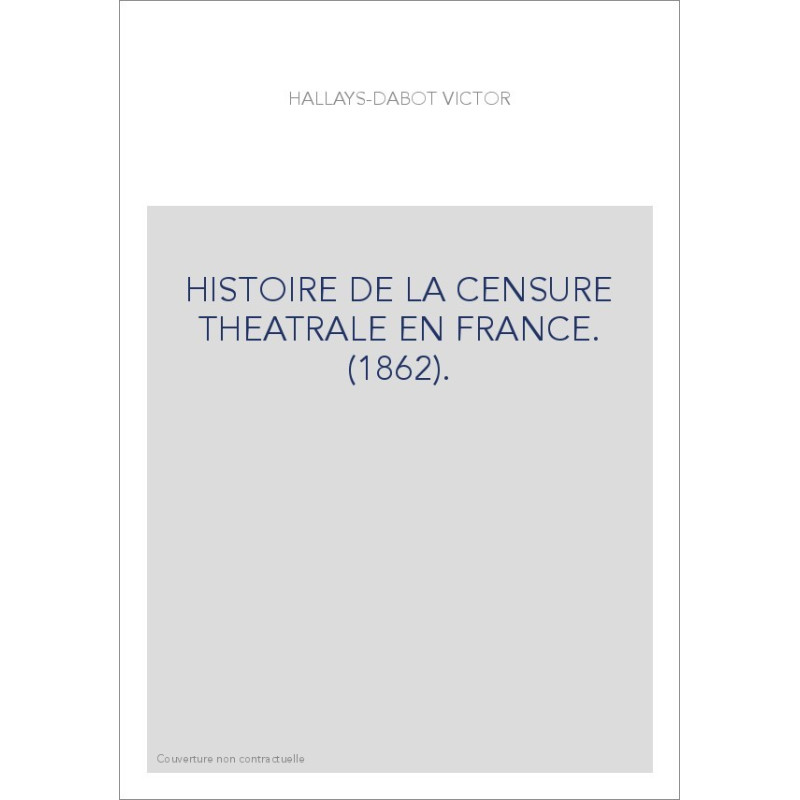 HISTOIRE DE LA CENSURE THEATRALE EN FRANCE. (1862).