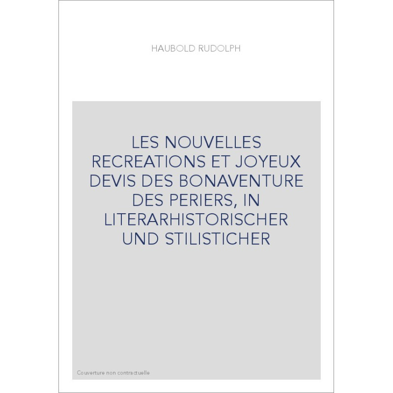 LES NOUVELLES RECREATIONS ET JOYEUX DEVIS DES BONAVENTURE DES PERIERS, IN LITERARHISTORISCHER UND STILISTICHER