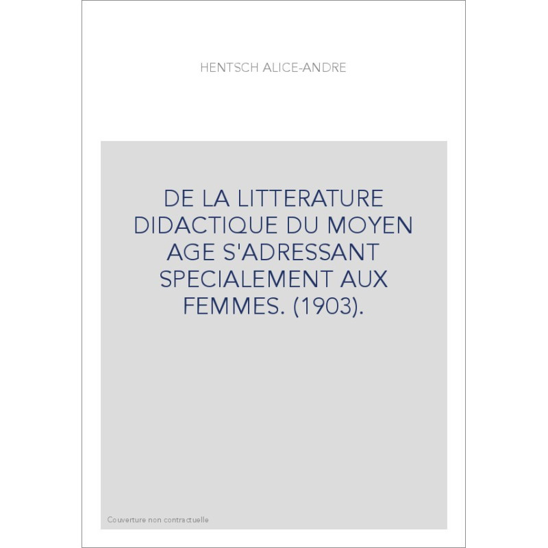 DE LA LITTERATURE DIDACTIQUE DU MOYEN AGE S'ADRESSANT SPECIALEMENT AUX FEMMES. (1903).