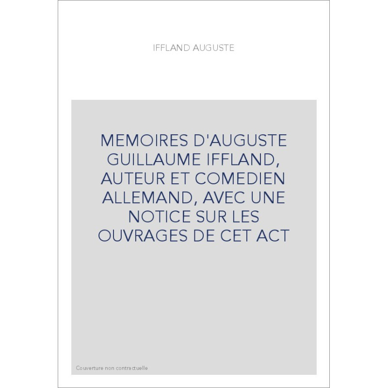 MEMOIRES D'AUGUSTE GUILLAUME IFFLAND, AUTEUR ET COMEDIEN ALLEMAND, AVEC UNE NOTICE SUR LES OUVRAGES DE CET AC