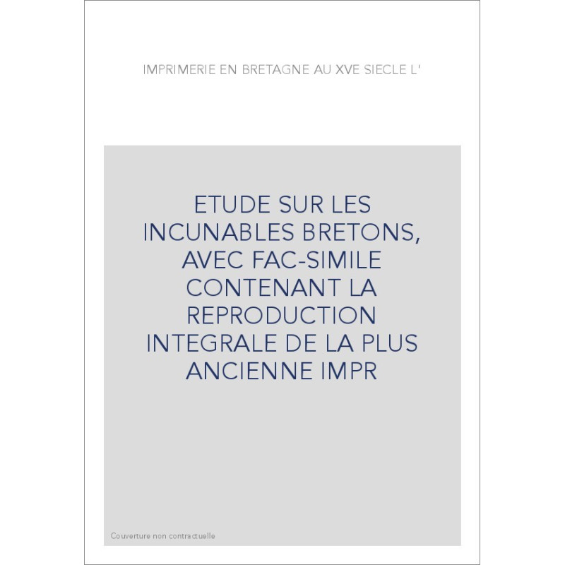 L'IMPRIMERIE EN BRETAGNE AU XVE SIECLE. ETUDE SUR LES INCUNABLES BRETONS,