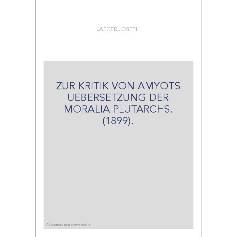 ZUR KRITIK VON AMYOTS UEBERSETZUNG DER MORALIA PLUTARCHS. (1899).