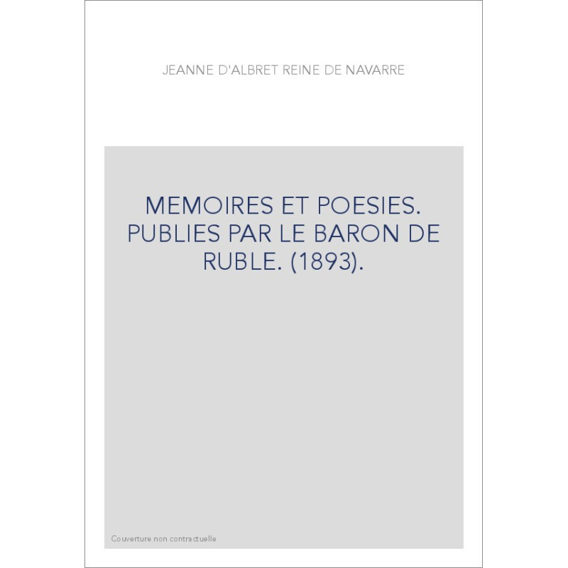 MEMOIRES ET POESIES. PUBLIES PAR LE BARON DE RUBLE. (1893).