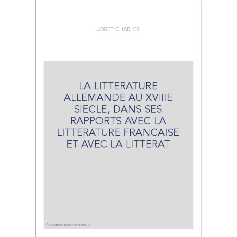 LA LITTERATURE ALLEMANDE AU XVIIIE SIECLE, DANS SES RAPPORTS AVEC LA LITTERATURE FRANCAISE ET AVEC LA LITTERAT