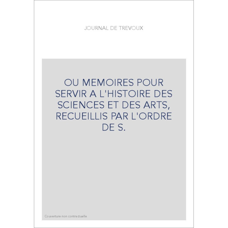 JOURNAL DE TREVOUX (1701-1767) OU MEMOIRES POUR SERVIR A L'HISTOIRE DES SCIENCES ET DES ARTS, RECUEILLIS PAR