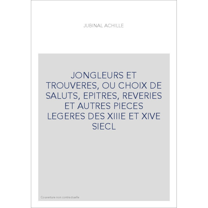 JONGLEURS ET TROUVERES, OU CHOIX DE SALUTS, EPITRES, REVERIES ET AUTRES PIECES LEGERES DES XIIIE ET XIVE SIECL