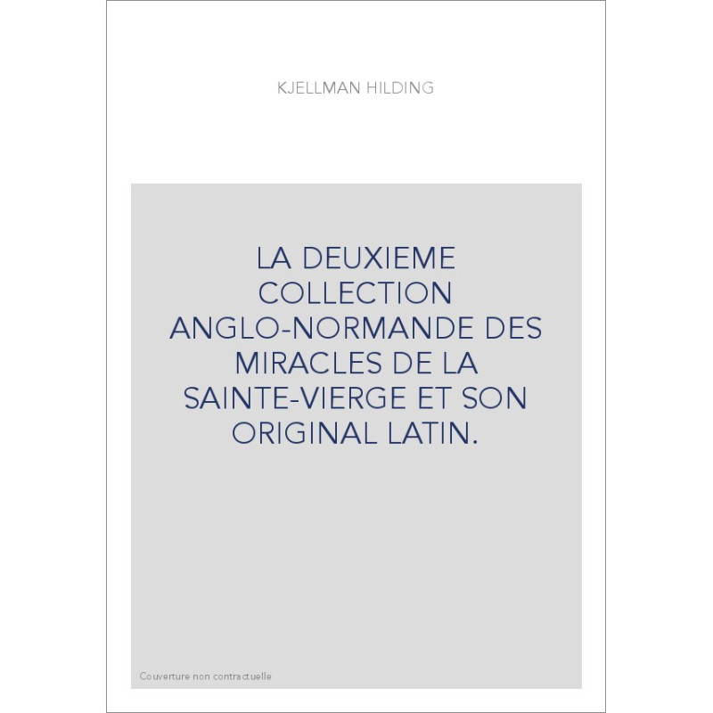 LA DEUXIEME COLLECTION ANGLO-NORMANDE DES MIRACLES DE LA SAINTE-VIERGE ET SON ORIGINAL LATIN.
