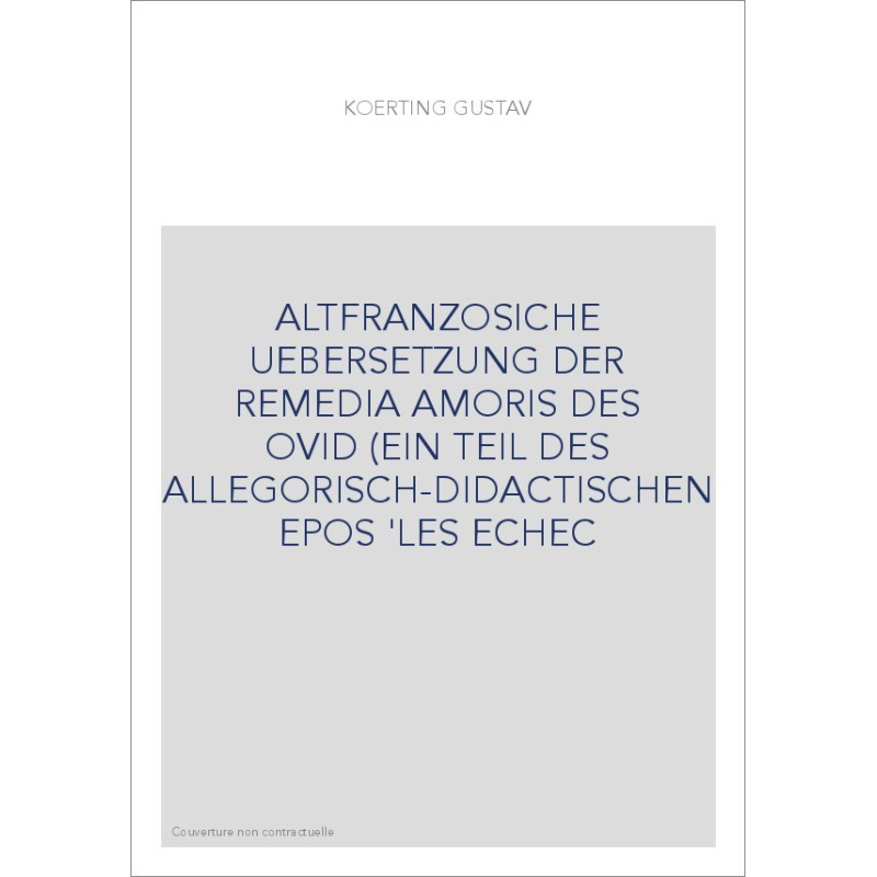 ALTFRANZOSICHE UEBERSETZUNG DER REMEDIA AMORIS DES OVID (EIN TEIL DES ALLEGORISCH-DIDACTISCHEN EPOS 'LES ECHE